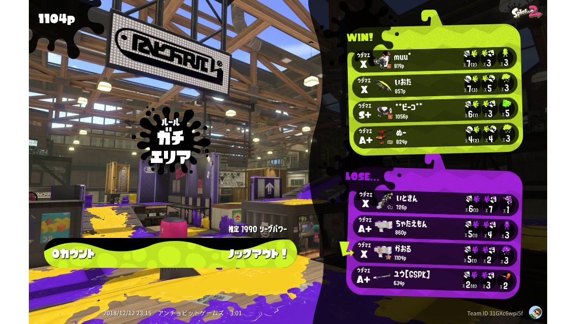 | Mode | Splat Zones - League Battle (Quad) | |||||||||||||||||||||||||