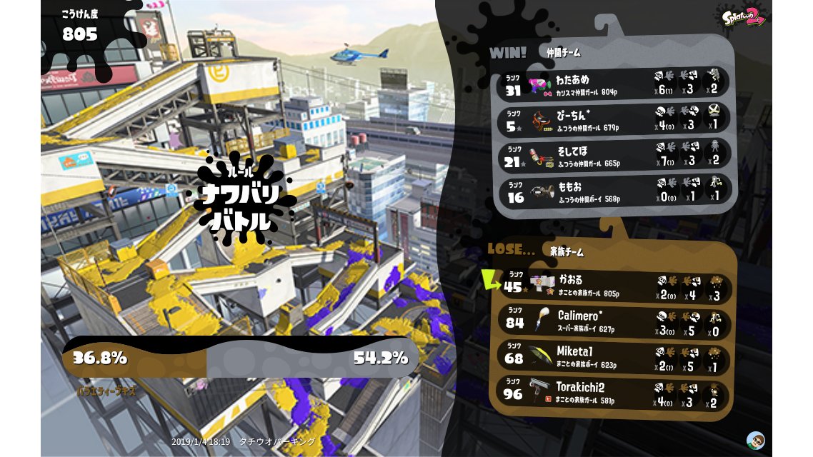| Team 家族 バラエティーブキズ Win Streak: 0 | 2,636 | 10 / 17 | 0.59 37.04% | ||||