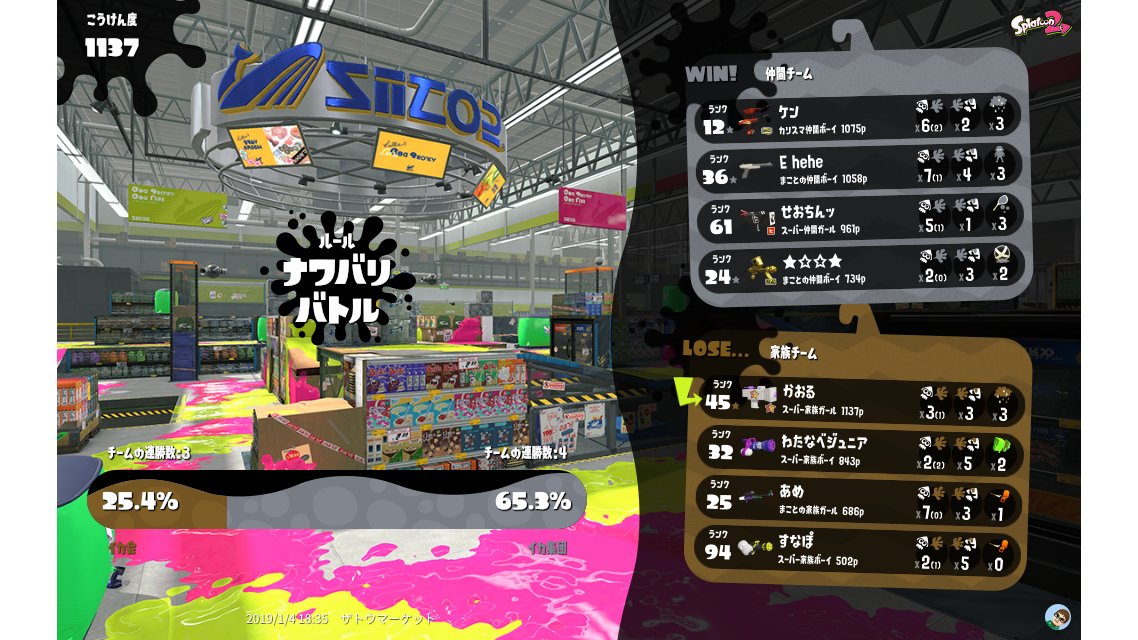 | Team 家族 イカ会 Win Streak: 3 | 3,168 | 10 / 16 | 0.62 38.46% | ||||