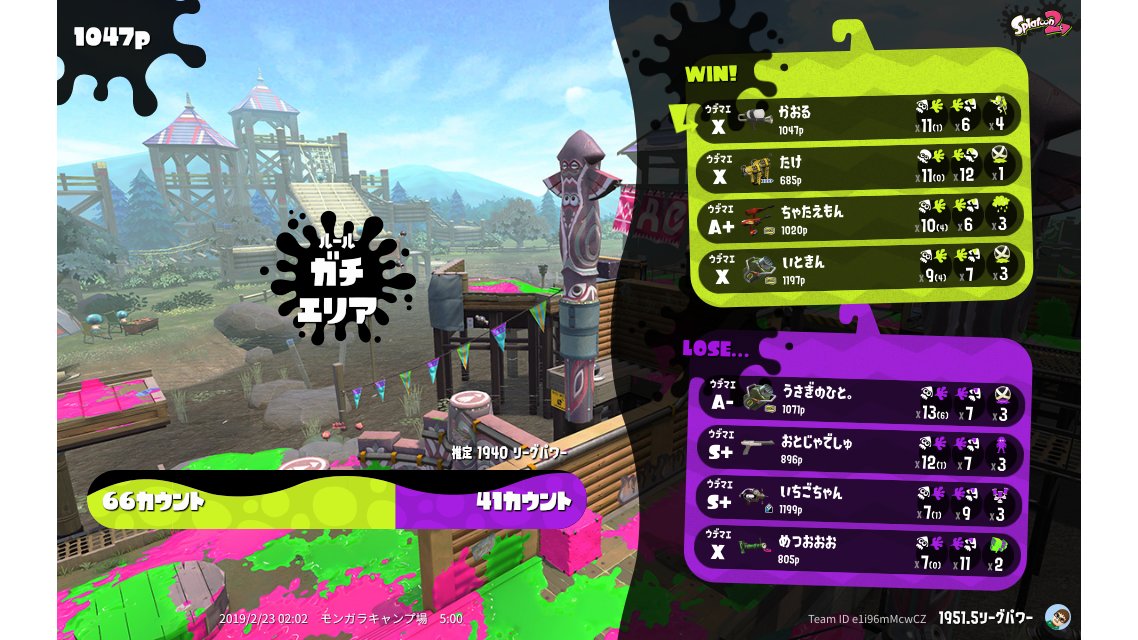 | Mode | Splat Zones - League Battle (Quad) | ||||||||||||||||||||||||||||||||||