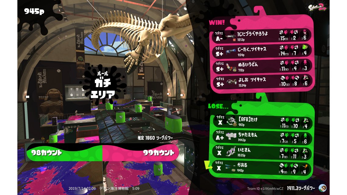 | Mode | Splat Zones - League Battle (Quad) | |||||||||||||||||||||||||||||||