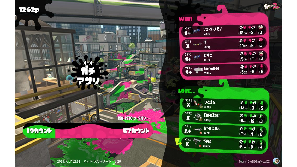| SplatNet Battle # | 19,857 | ||||||||||||||||||||||||||||