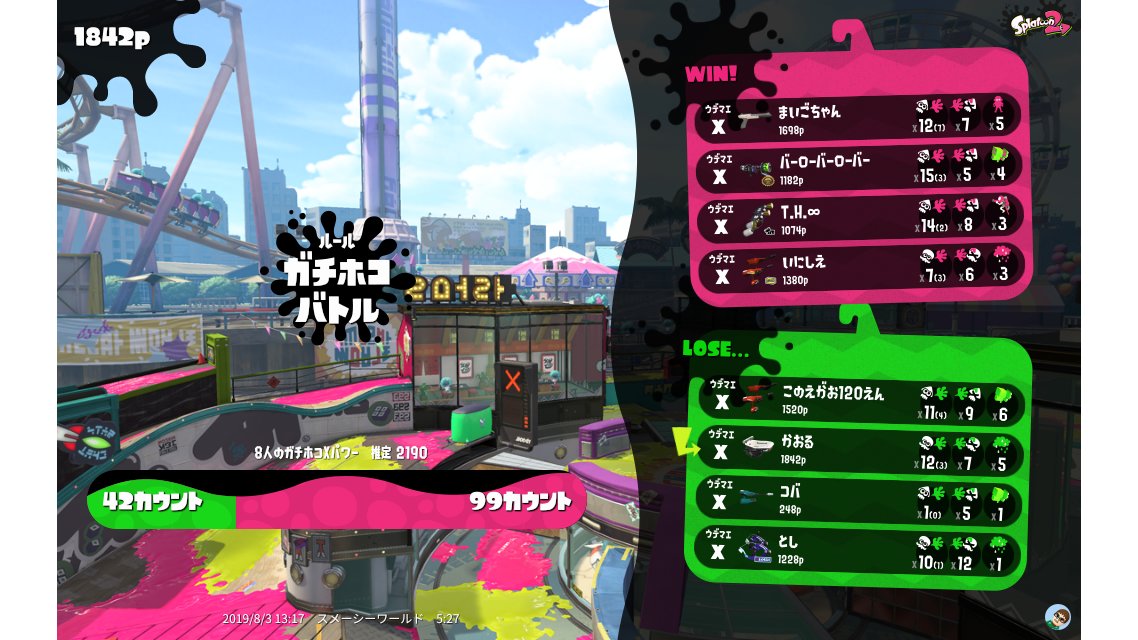 | Name | Weapon | Level | Rank | Inked | k+a/sp | k/d |