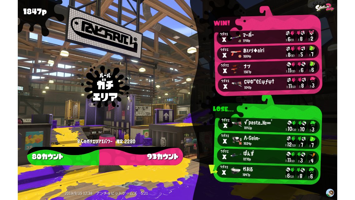 | Mode | Splat Zones - Ranked Battle | ||||||||||||||||||||||||||||||||||||||||