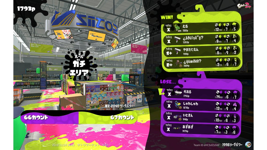 | Mode | Splat Zones - League Battle (Twin) | ||||||||||||||||||||||||||||||||||||||||