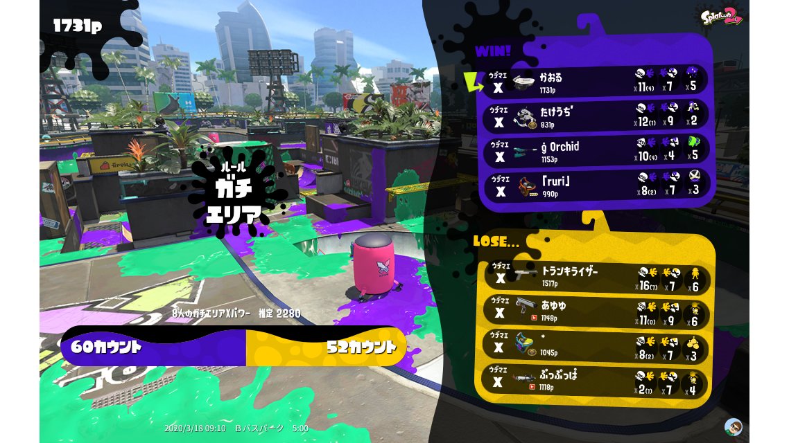 | Mode | Splat Zones - Ranked Battle | ||||||||||||||||||||||||||||||||||||||||