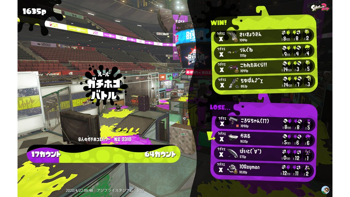 | Name | Weapon | Level | Rank | Inked | k+a/sp | k/d |