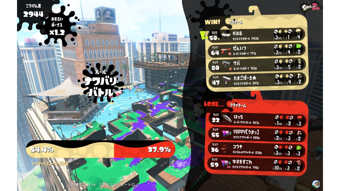 | Team マヨ ハイカットスニーカー同好会 Win Streak: 0 | 3,520 | 11 / 14 | 0.79 44.00% | ||||