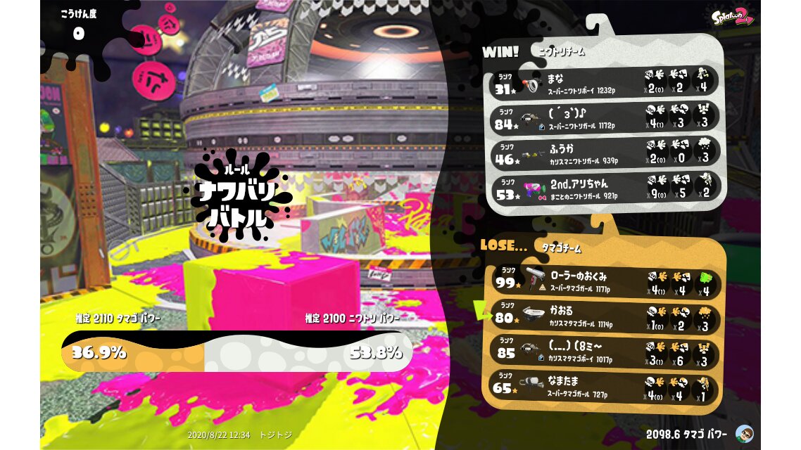 | Splatfest Title | タマゴ Champion 960 → タマゴ Champion 980 | ||||||||||||||||||||||||||||||||||||||||