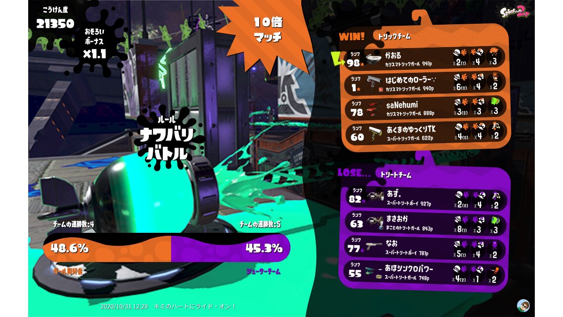 | Splatfest Title | トリック Champion 799 → トリック Champion 898 | ||||||||||||||||||||||||||||