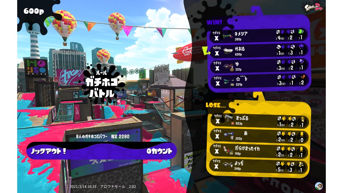 | Name | Weapon | Level | Rank | Inked | k+a/sp | k/d |