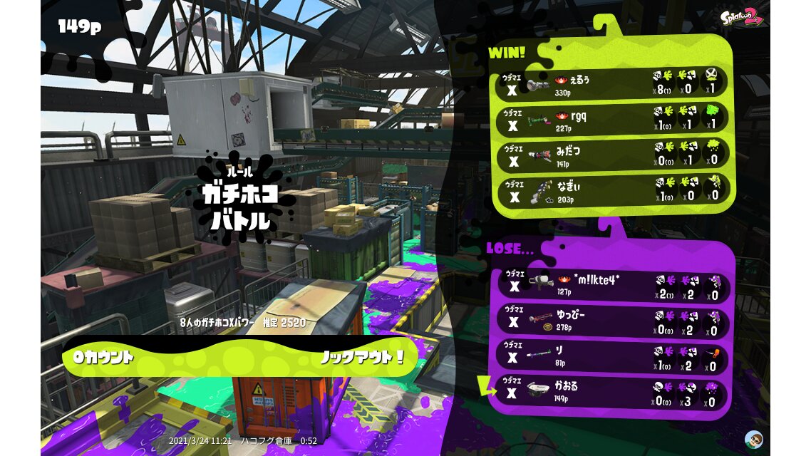 | Name | Weapon | Level | Rank | Inked | k+a/sp | k/d |