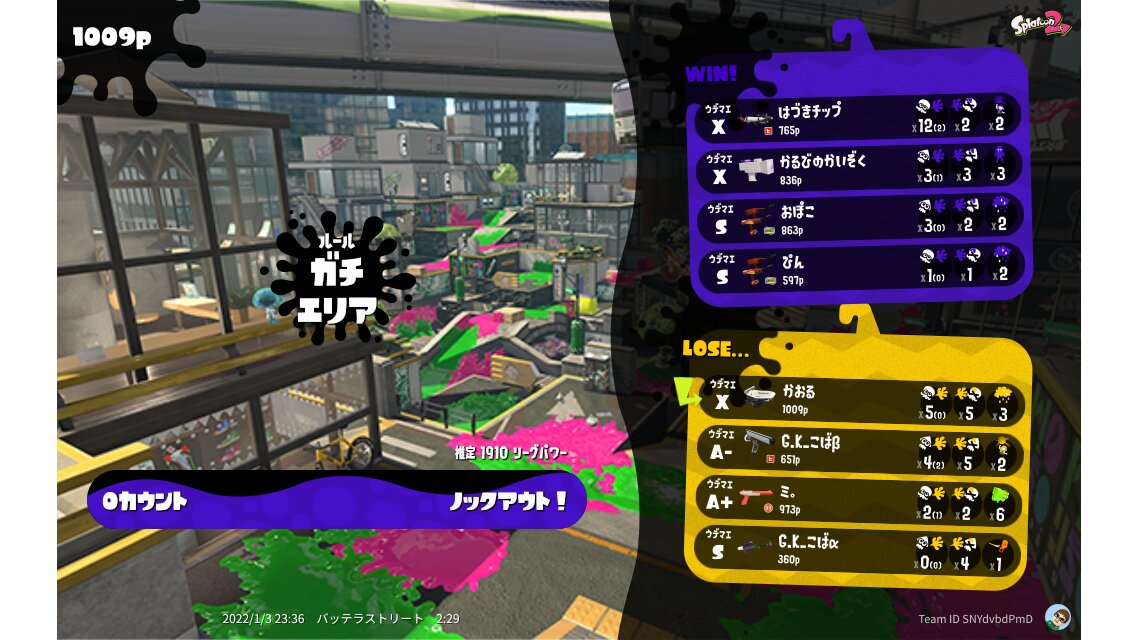 | Mode | Splat Zones - League Battle (Quad) | |||||||||||||||||||||||||||||||||||||