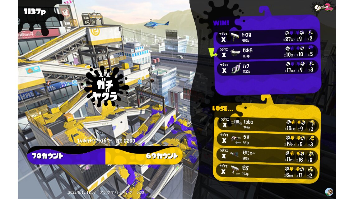 | Name | Weapon | Level | Rank | Inked | k+a/sp | k/d |