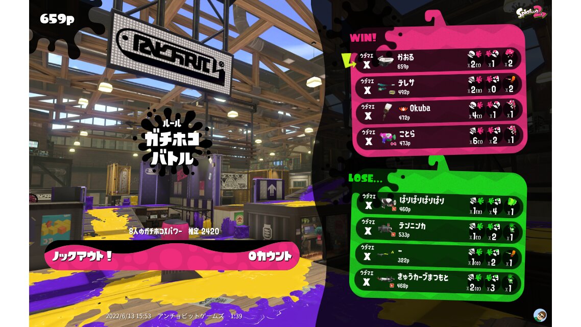 | Name | Weapon | Level | Rank | Inked | k+a/sp | k/d |