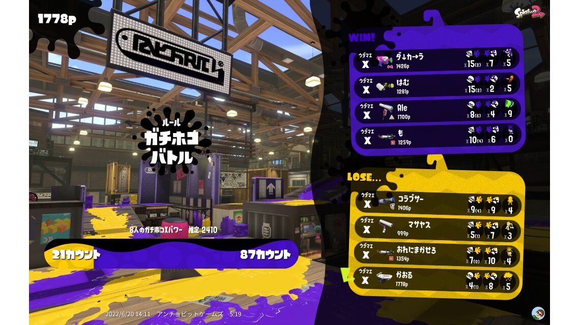 | Name | Weapon | Level | Rank | Inked | k+a/sp | k/d |