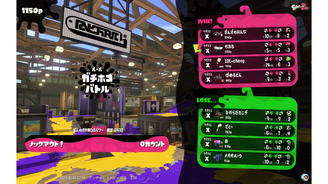| Name | Weapon | Level | Rank | Inked | k+a/sp | k/d |