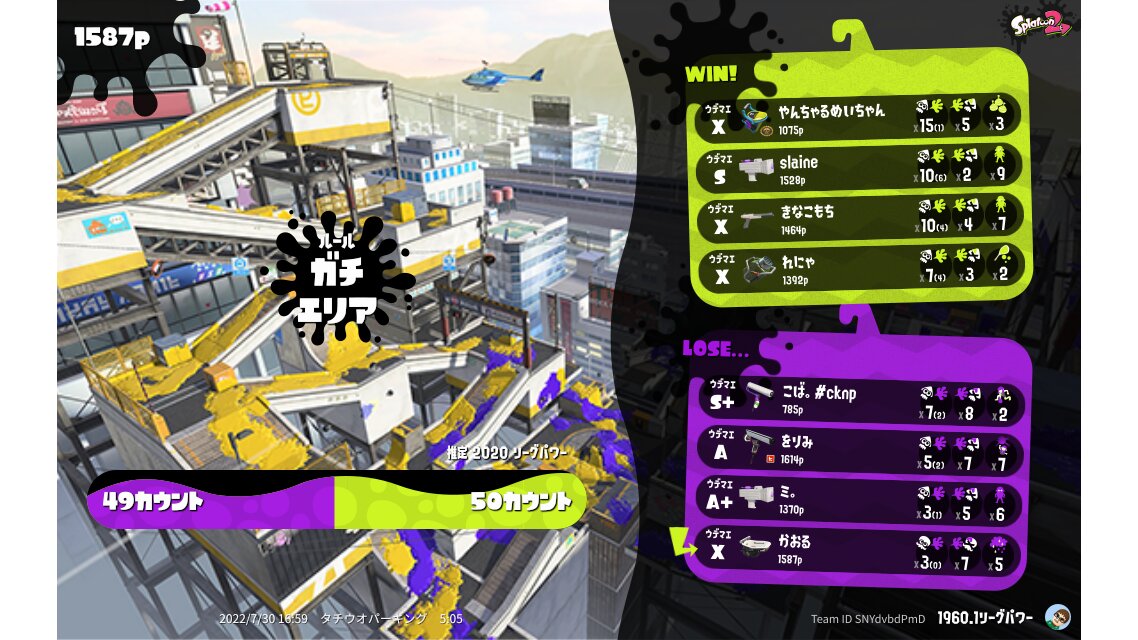 | Mode | Splat Zones - League Battle (Quad) | |||||||||||||||||||||||||||||||||||||