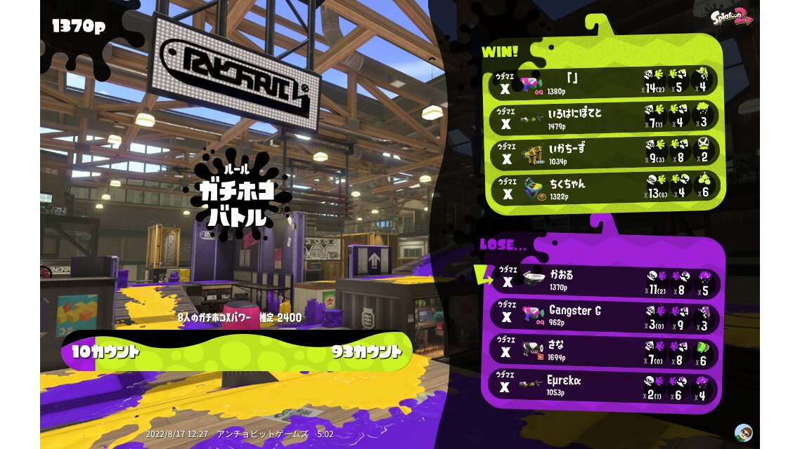 | Name | Weapon | Level | Rank | Inked | k+a/sp | k/d |