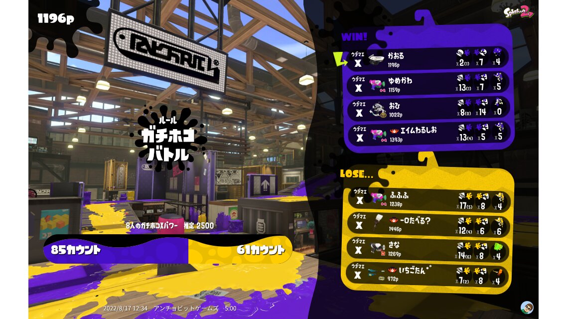 | Name | Weapon | Level | Rank | Inked | k+a/sp | k/d |