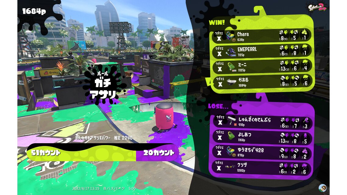 | Name | Weapon | Level | Rank | Inked | k+a/sp | k/d |