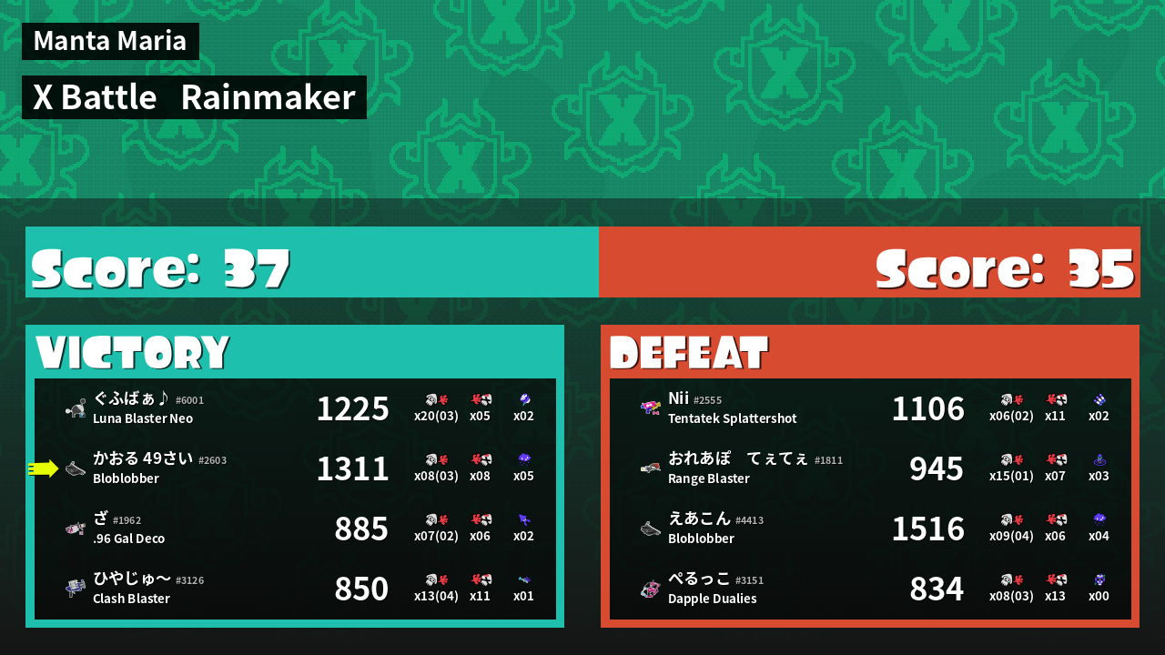 | Mode | Rainmaker - X Battle | ||