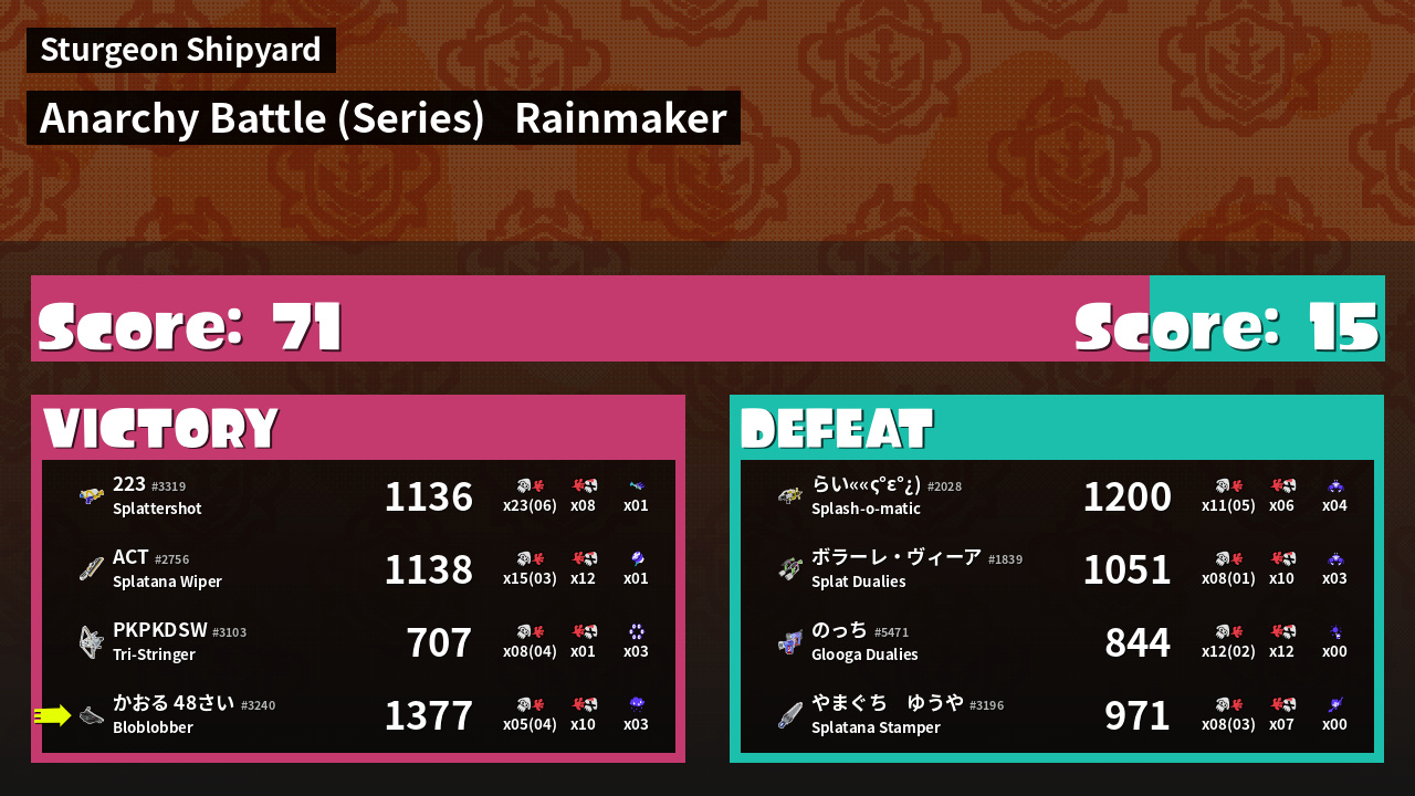 | Mode | Rainmaker - Anarchy Battle (Series) | ||