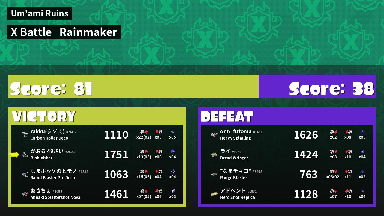 Kills / Deaths | 8 + 5 / 6 > Kill Ratio: 1.33 | ||