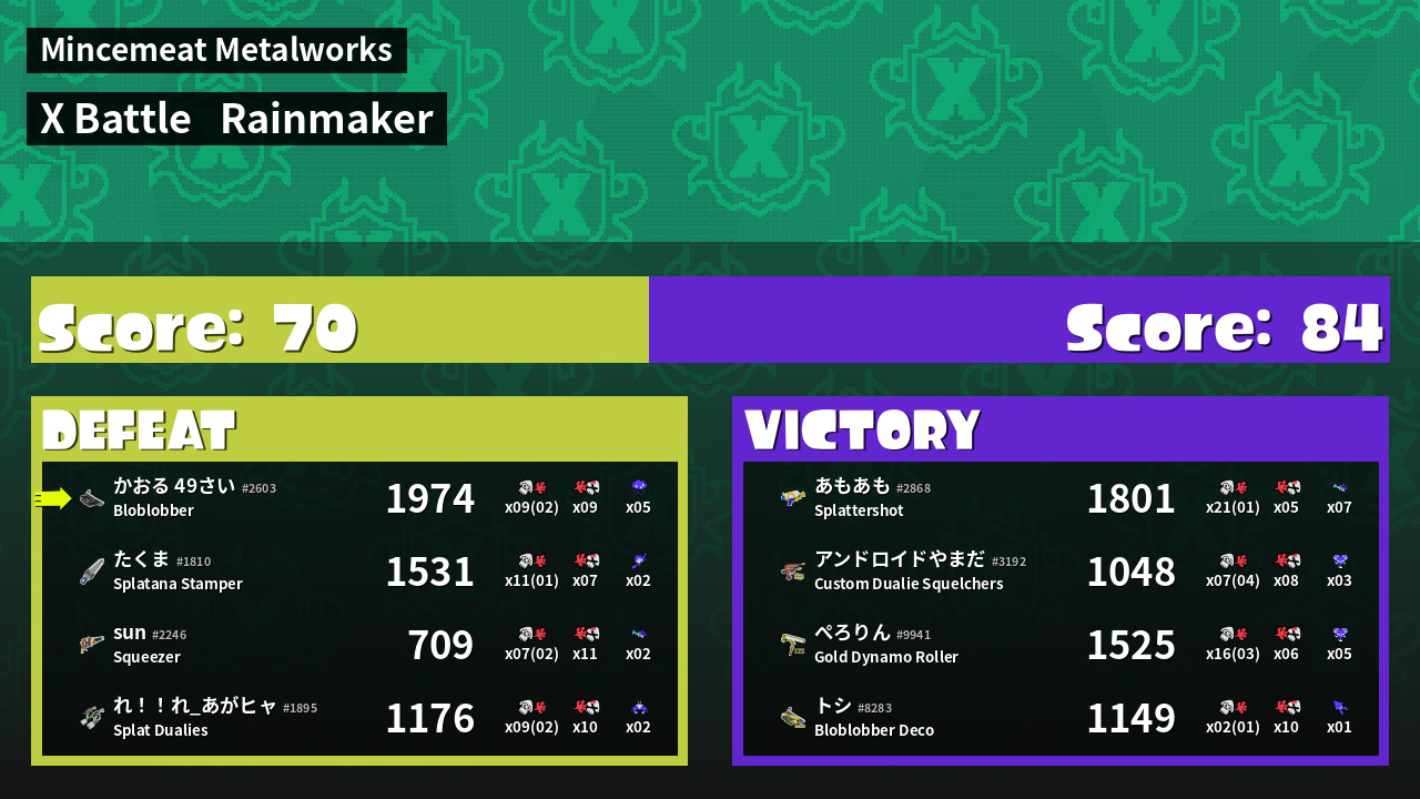 | Mode | Rainmaker - X Battle | ||