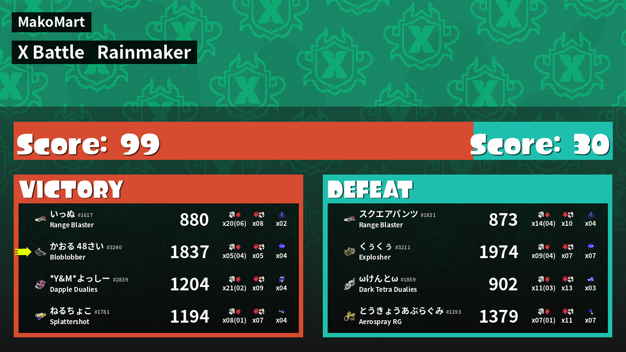 | Weapon | Bloblobber ( Sprinkler / Ink Storm) | ||