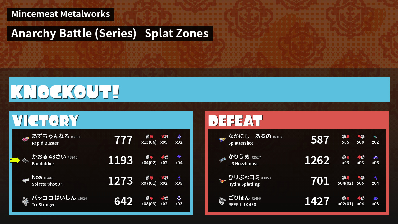 | Medals | #1 Splat Zone Inker #1 Super Jump Spot #1 Splat Zone Hero | ||