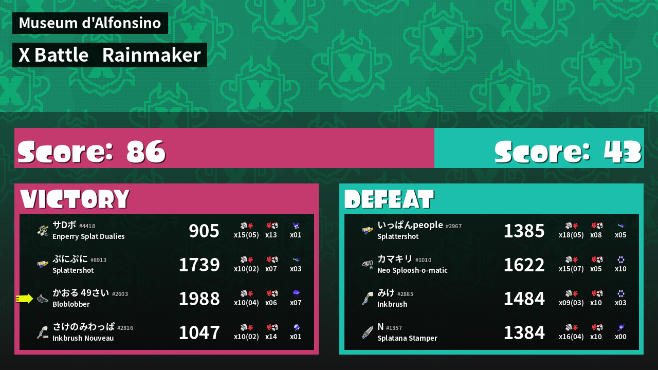 | Weapon | Bloblobber ( Sprinkler / Ink Storm) | ||
