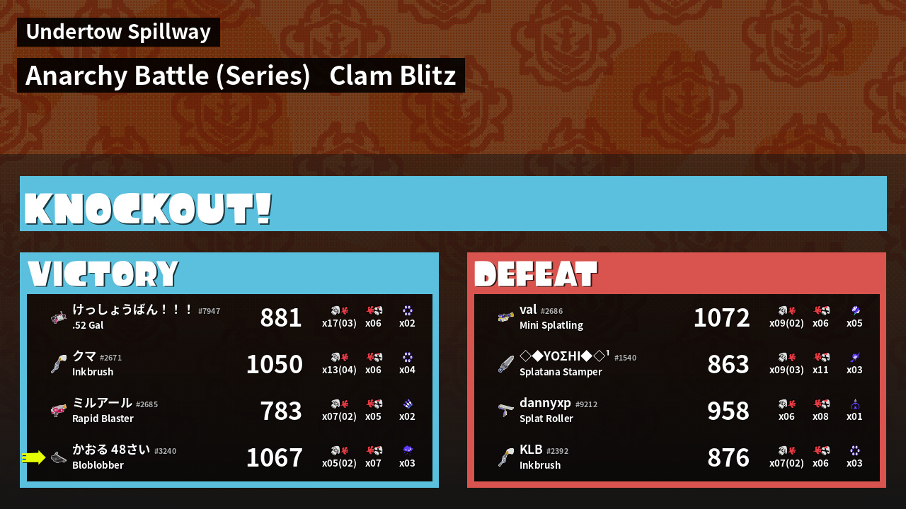| Mode | Clam Blitz - Anarchy Battle (Series) | ||