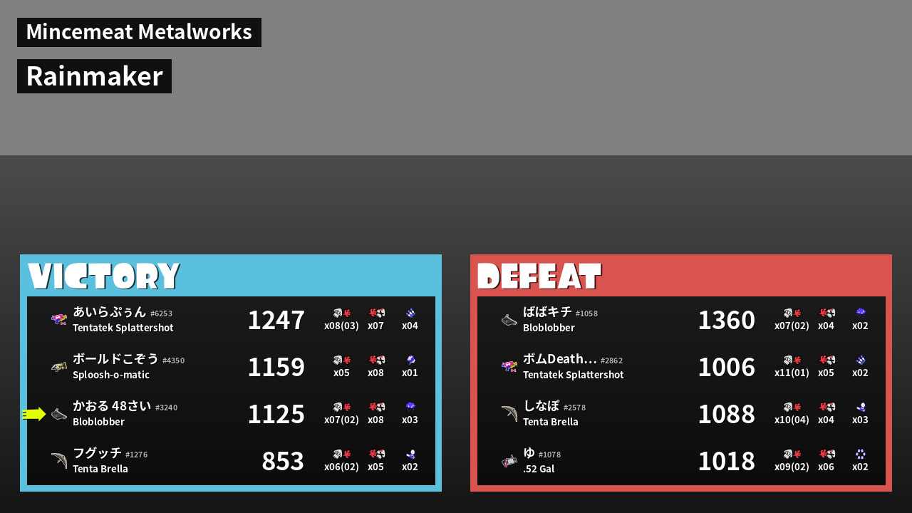 | Medals | #1 Enemy Splatter #1 Rainmaker Stopper #2 Overall Splatter | ||