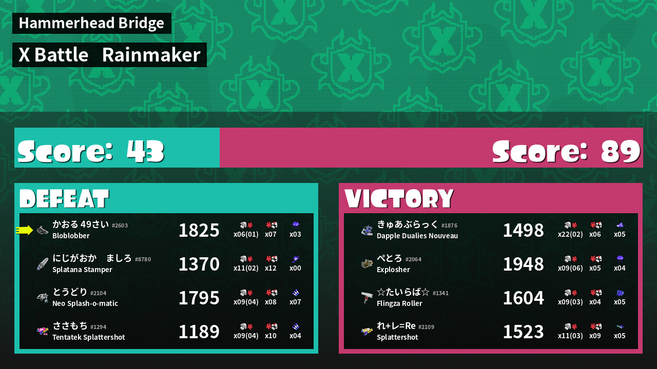 | Weapon | Bloblobber ( Sprinkler / Ink Storm) | ||