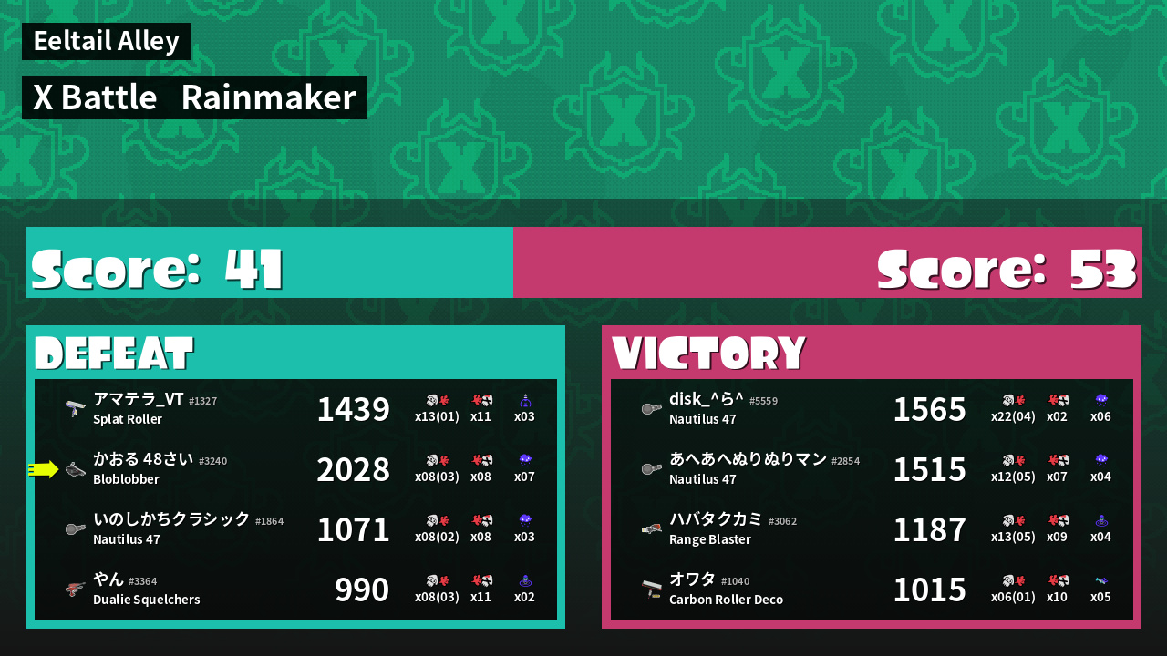 | Medals | #1 Turf Inker #1 Splat Assister #1 Rainmaker Stopper | ||