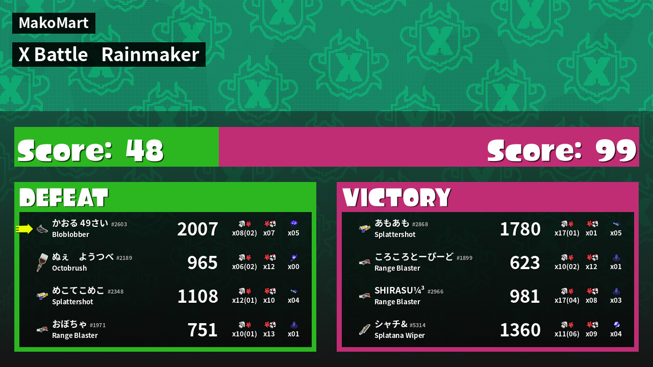 | Weapon | Bloblobber ( Sprinkler / Ink Storm) | ||