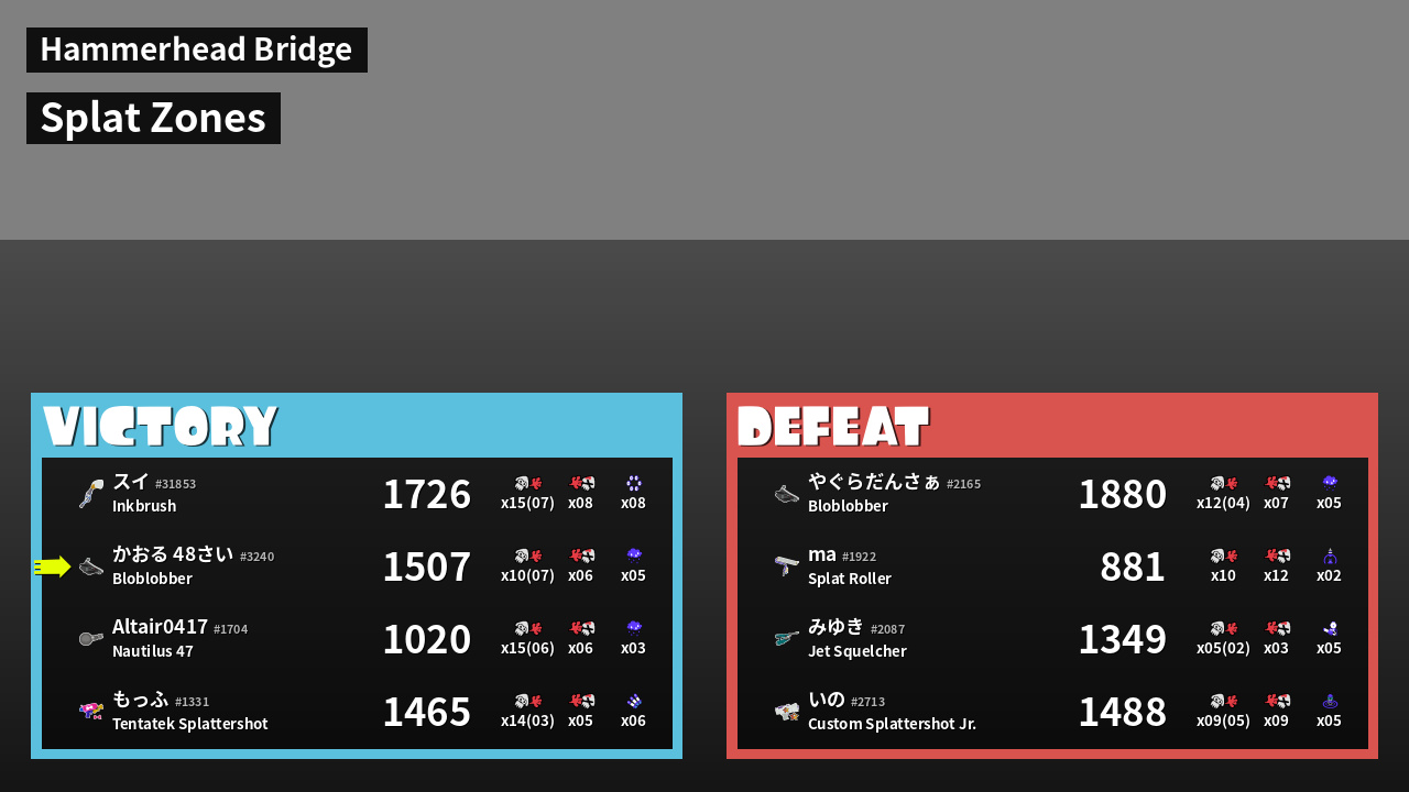 | Medals | #1 Splat Zone Guard #1 Super Jump Spot #1 Splat Assister | ||