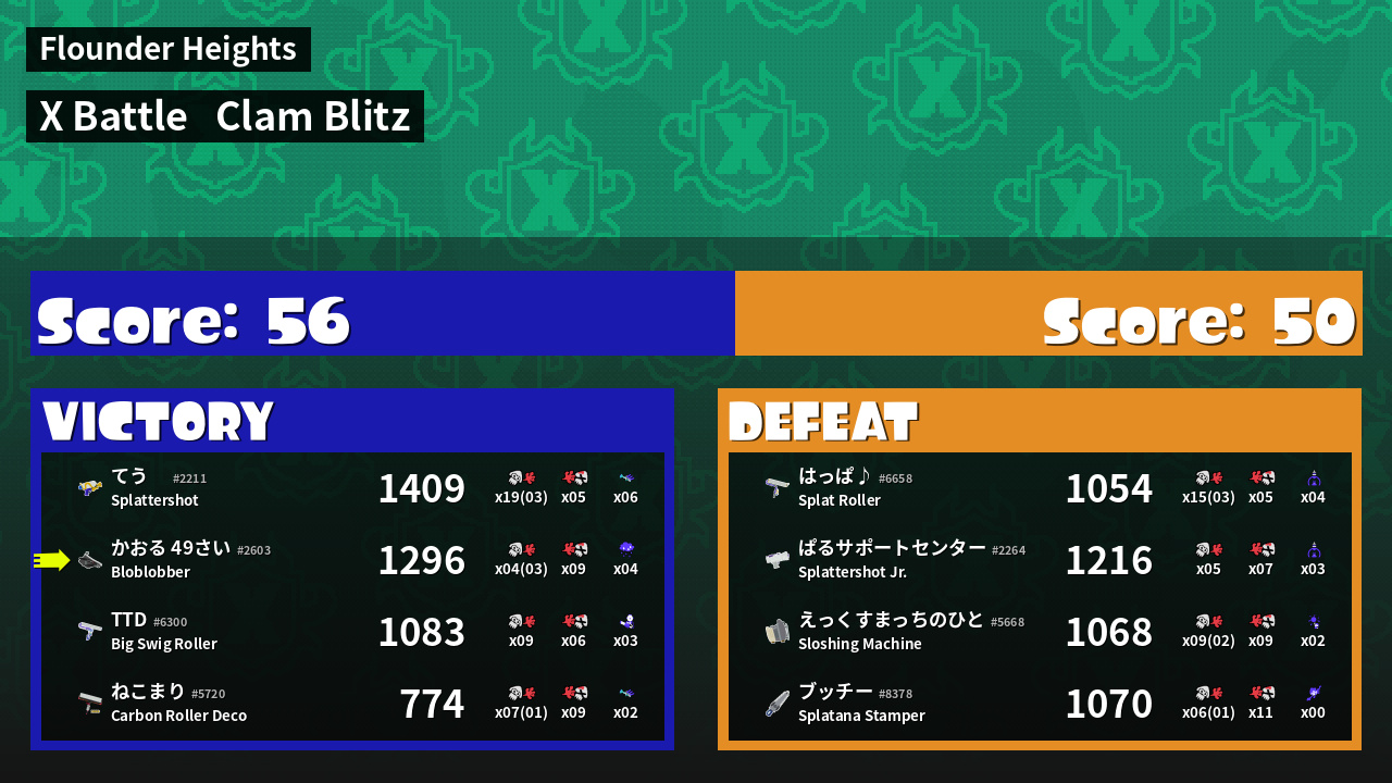 | Mode | Clam Blitz - X Battle | ||