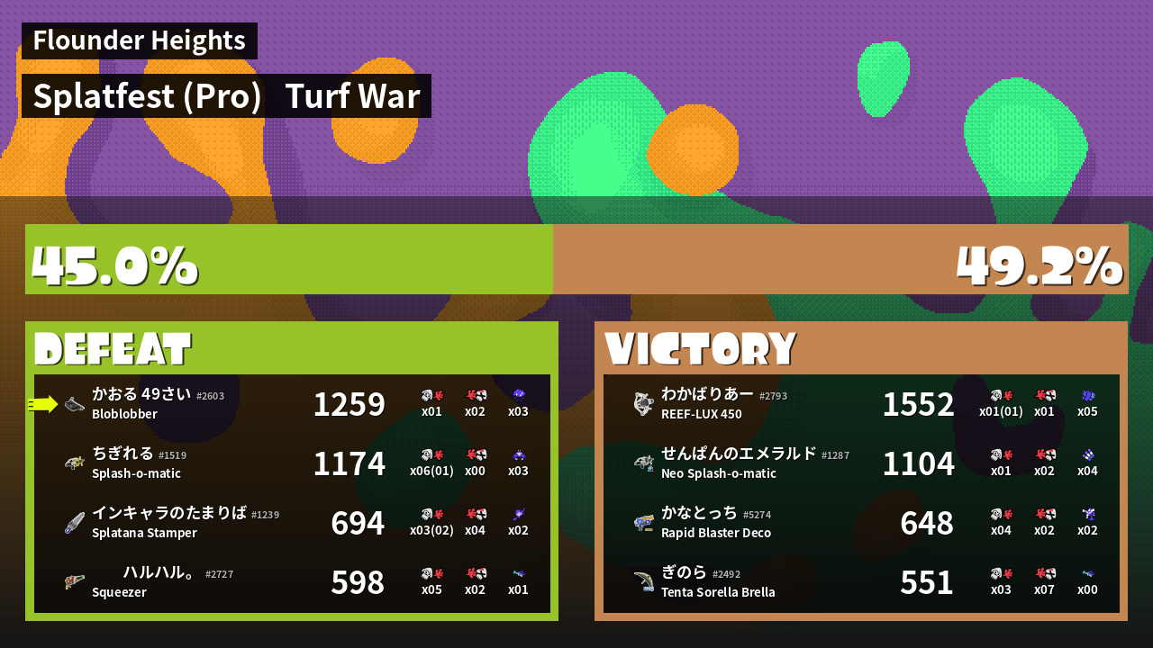 | Mode | Turf War - Splatfest (Pro) | ||