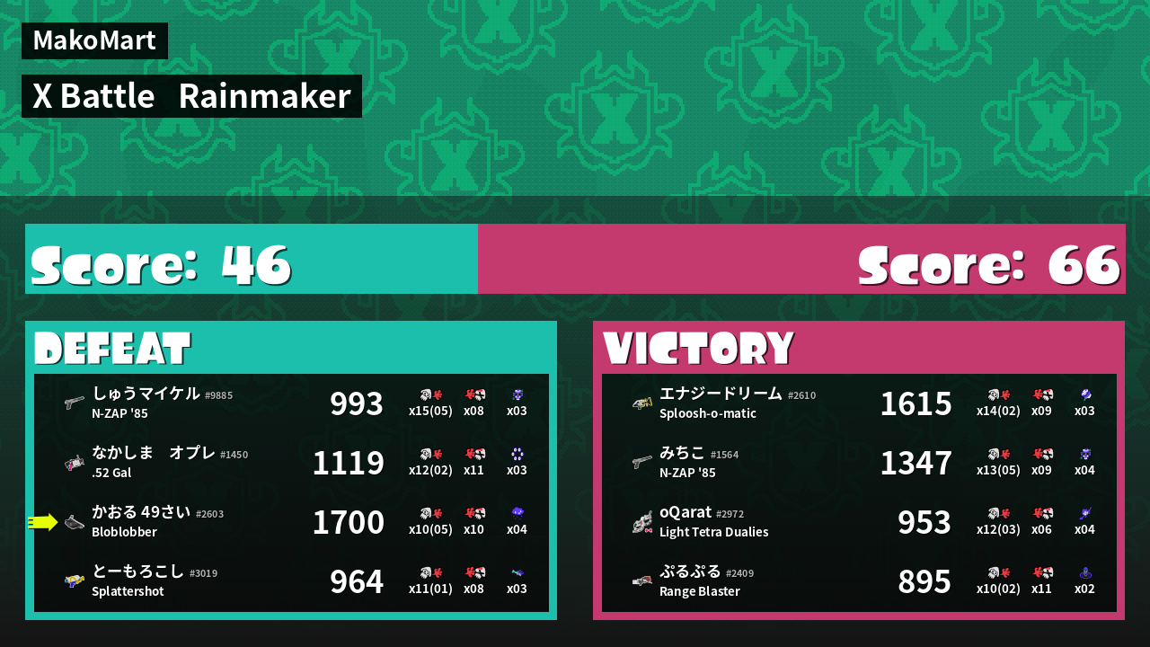 | Weapon | Bloblobber ( Sprinkler / Ink Storm) | ||