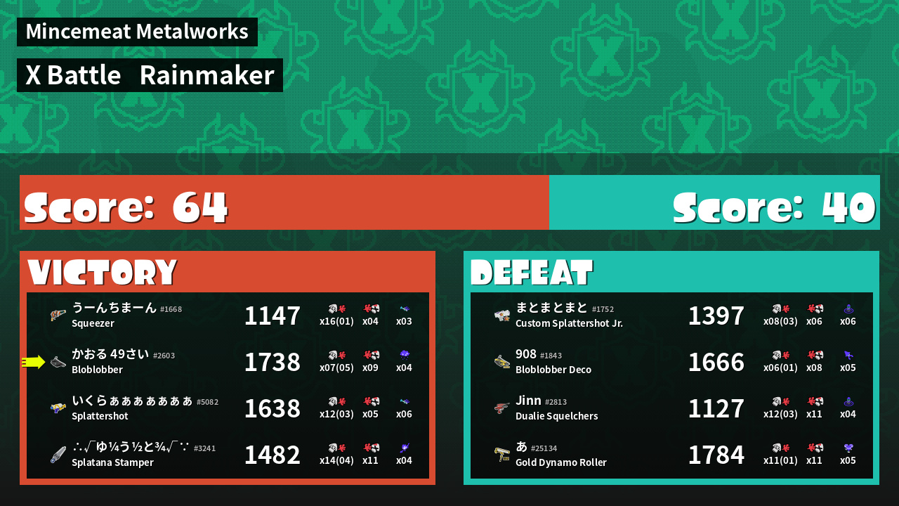 | Weapon | Bloblobber ( Sprinkler / Ink Storm) | ||