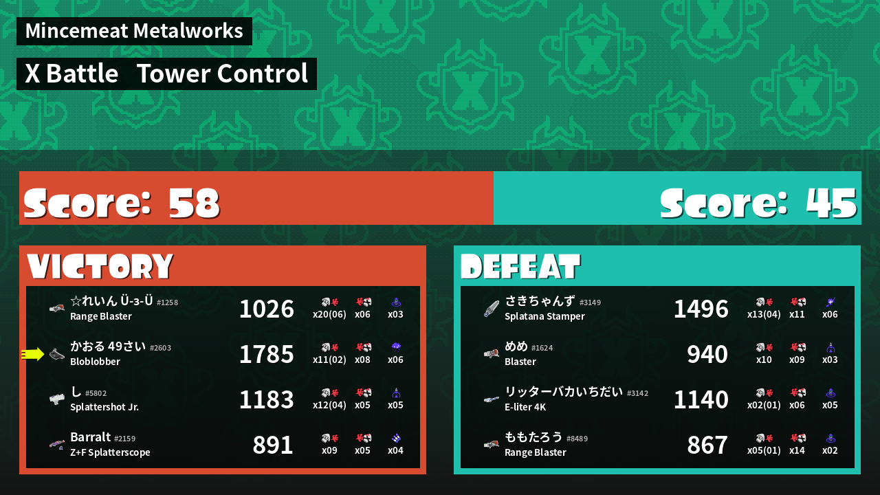 Kills / Deaths | 9 + 2 / 8 > Kill Ratio: 1.12 | ||
