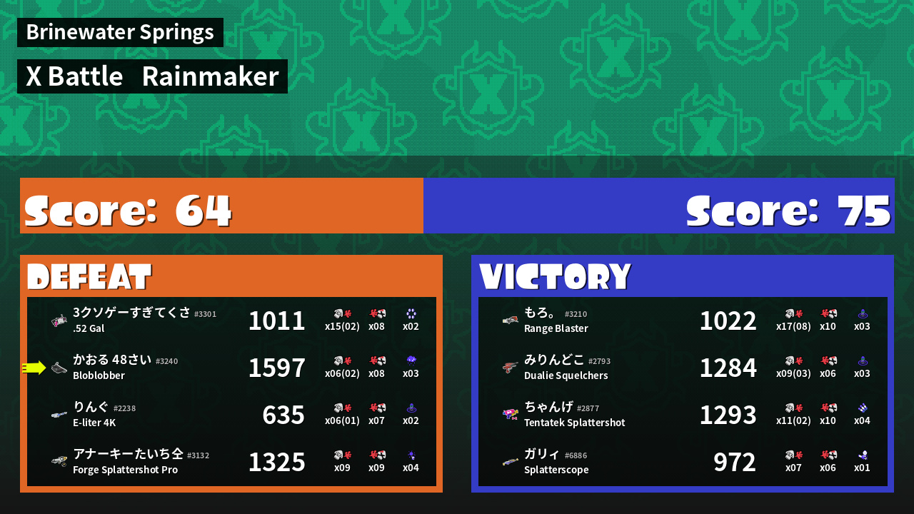 | Medals | #1 Score Booster #1 Turf Inker #1 Splat Assister | ||