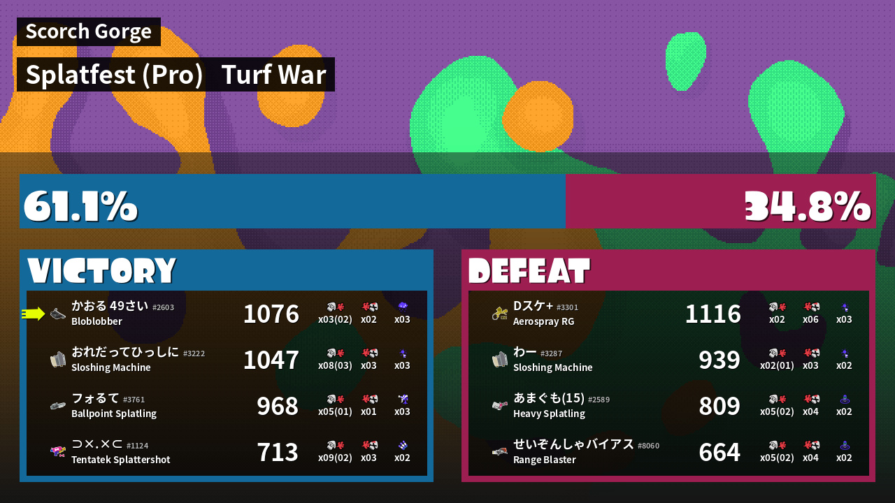 | Mode | Turf War - Splatfest (Pro) | ||