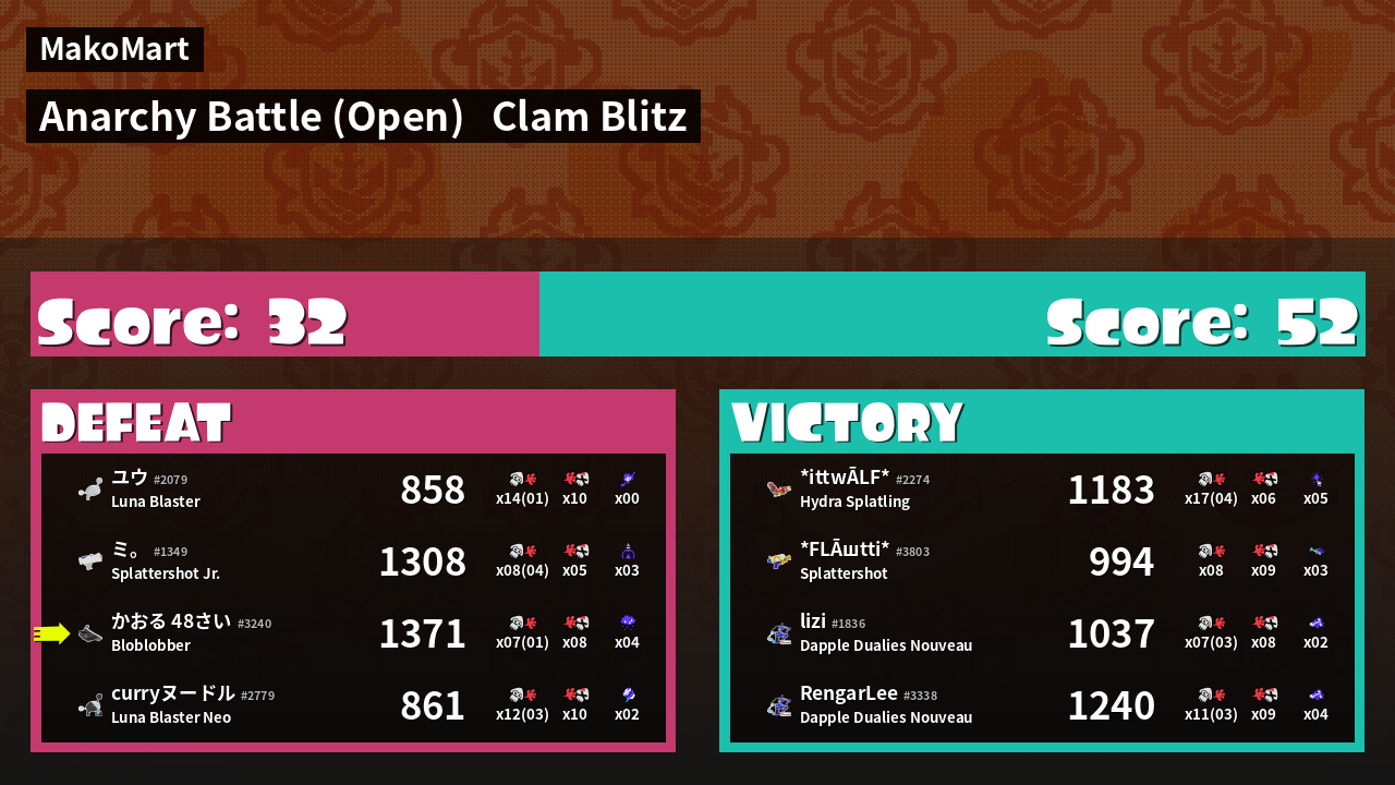 | Mode | Clam Blitz - Anarchy Battle (Open) | ||