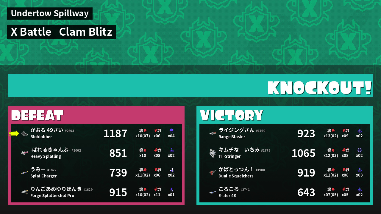 | Mode | Clam Blitz - X Battle | ||