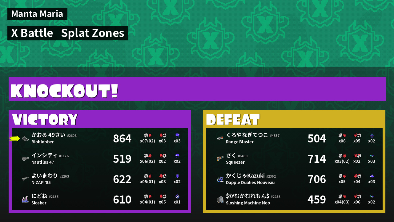 | Medals | #1 Overall Splatter #1 Splat Zone Inker #1 Turf Inker | ||