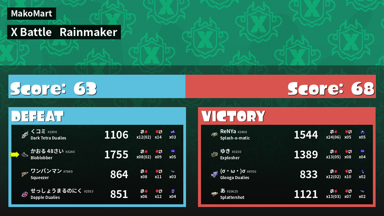 | Mode | Rainmaker - X Battle | ||
