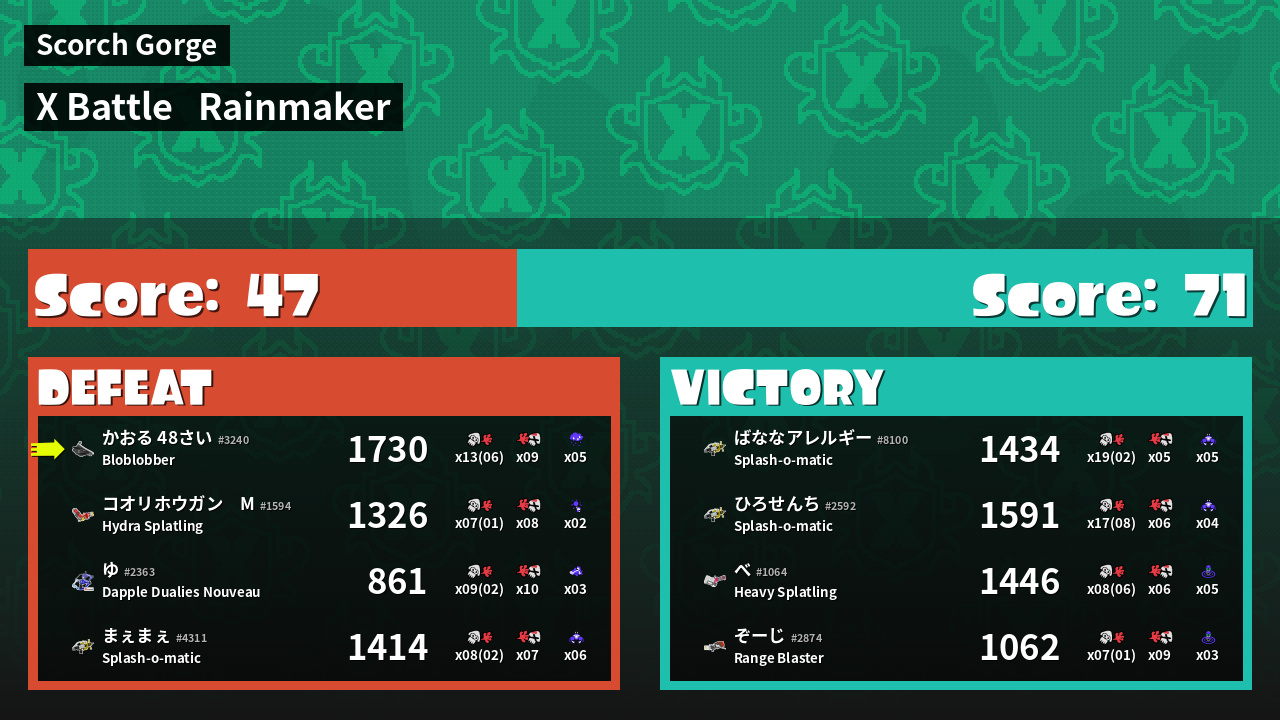 | Medals | #1 Overall Splatter #1 Score Booster Record-Score Setter | ||
